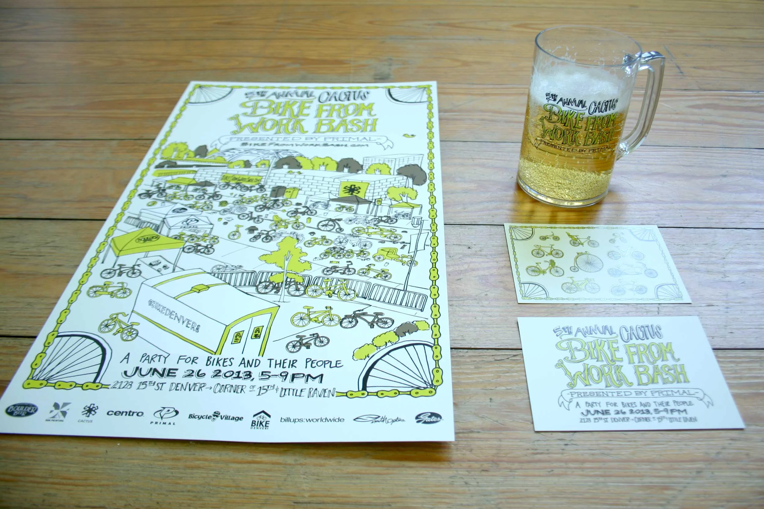 Branding materials for Cactus Bike from Work Bash, a party for bike and beer people throughout the city of Denver.