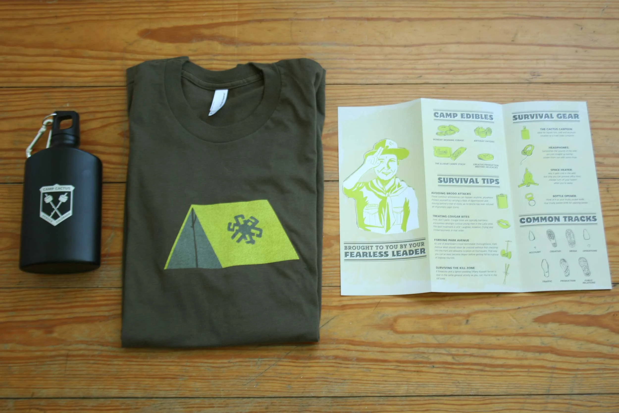 Branding materials for Camp Cactus, a fun kit of goods for employees while Cactus Denver held a temporary spot during a remodel.